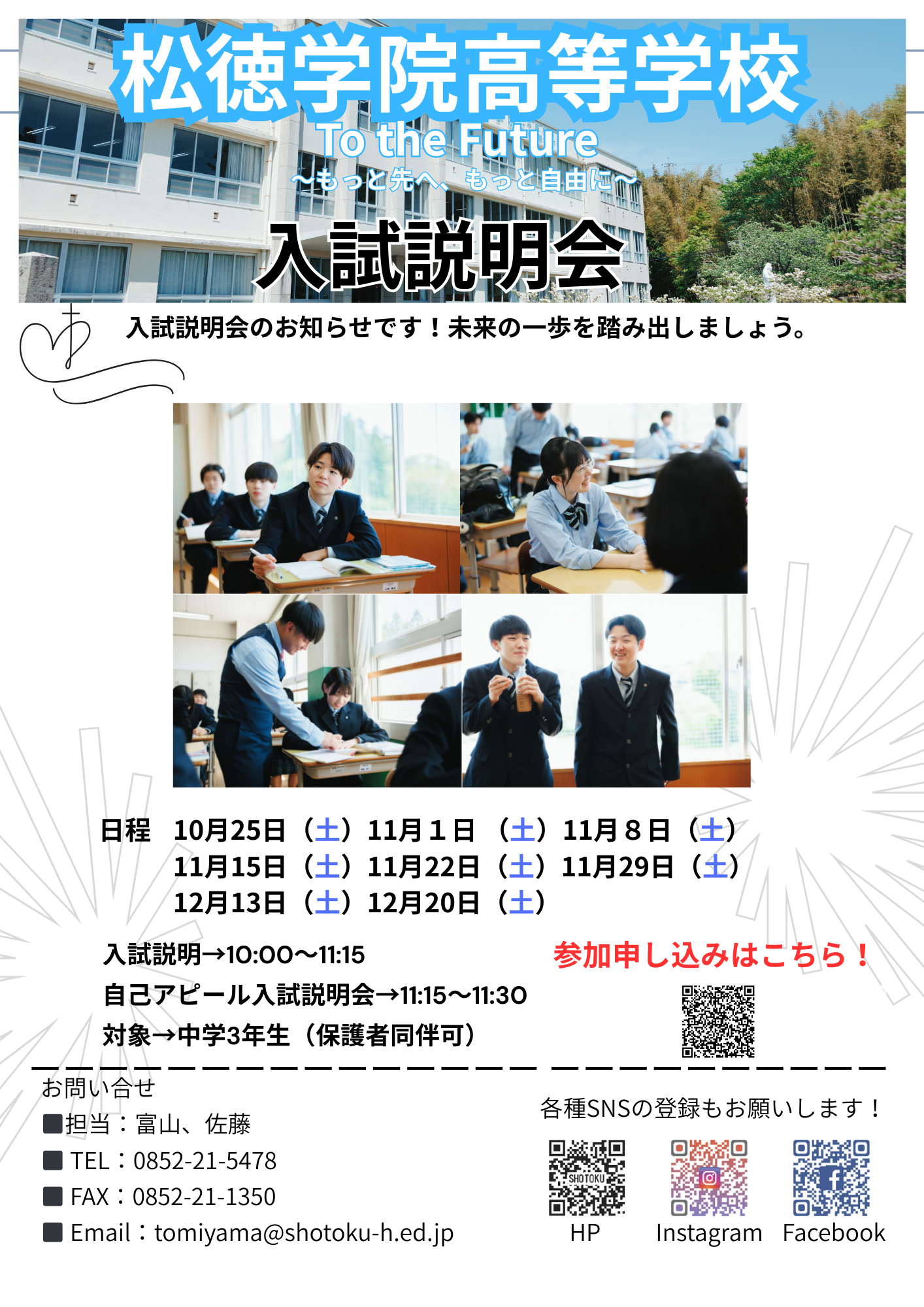 学校生活や松徳メソッド、進路状況など学校の様子が分かる内容となっています。